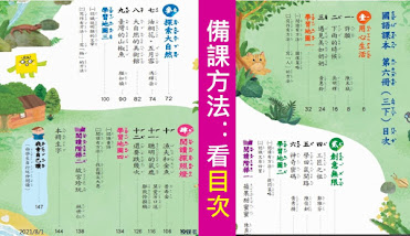 所以,我們備課時,可以先瀏覽「目次」, 思考單元主題和3課課文、學習地圖之間的關係,搭配習作訓練能力,那就能更有效的掌握備課重點了。